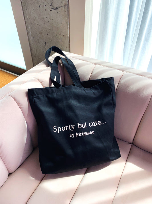 by kirbyanne Sali Tote Bag in Black with Milky Pink Embroidery