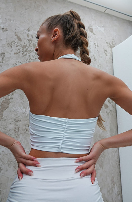 Jenna Halter Neck Top with Inbuilt Bra in Marshmallow White